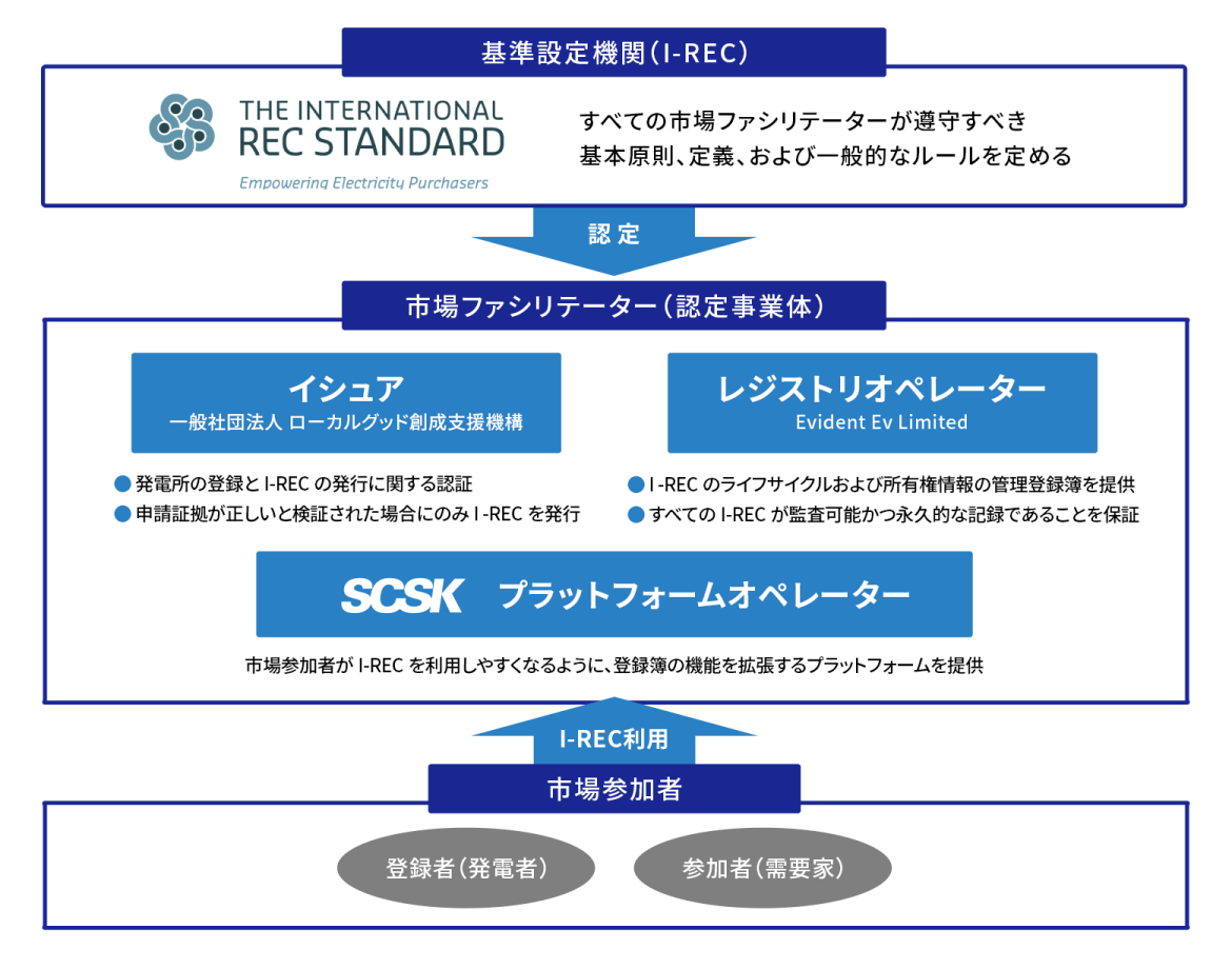 そんなI-RECの再エネ属性証明が、いよいよ日本でも使えるようになりました。I-RECには制度運営を担当し、再エネ属性証明の発行主体となる「イシュア」と呼ばれる第三者機関が存在しており、日本のイシュアとして活動しているのがローカルグッド創成支援機構です。