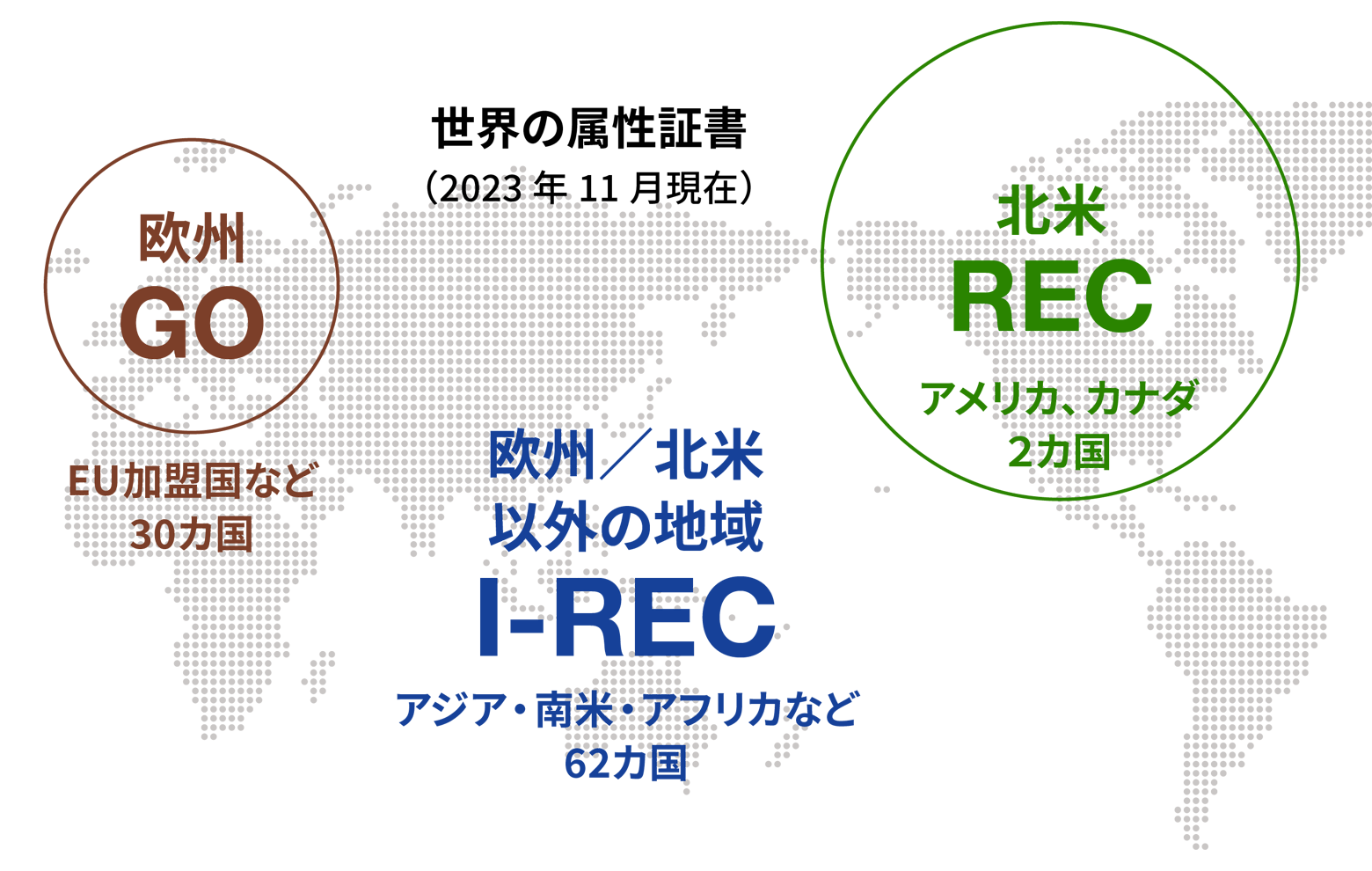 - 世界には3つの属性証書(REC・GO・I-REC)が存在している