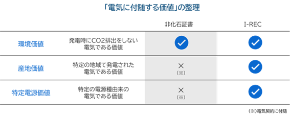まず、日本で主に流通している証書は「非化石証書」です。この非化石証書は、いわば「カーボンフリーであること」を示すための環境価値を担保するものであり、CO2を排出しない電力を使用していると報告する根拠となります。ただし、注意すべき点として、非化石証書そのものには「いつ」「どこで」「どのような方法で」発電されたかといった電力の属性情報が含まれていません。こうした情報は、電力契約に付随する「産地価値」や「特定電源価値」として扱われており、相対での電力契約が前提となっています。