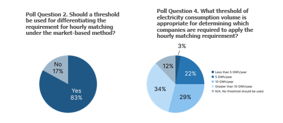 どのような閾値を設定するべきかについても議論と投票が行われています。まず、消費量に基づく閾値の導入そのものについては、約83%の技術ワーキンググループメンバーが賛成しました。具体的な閾値としては、「年間10GWh超」が最も支持されており、約34%のメンバーがこの案を選んでいます。